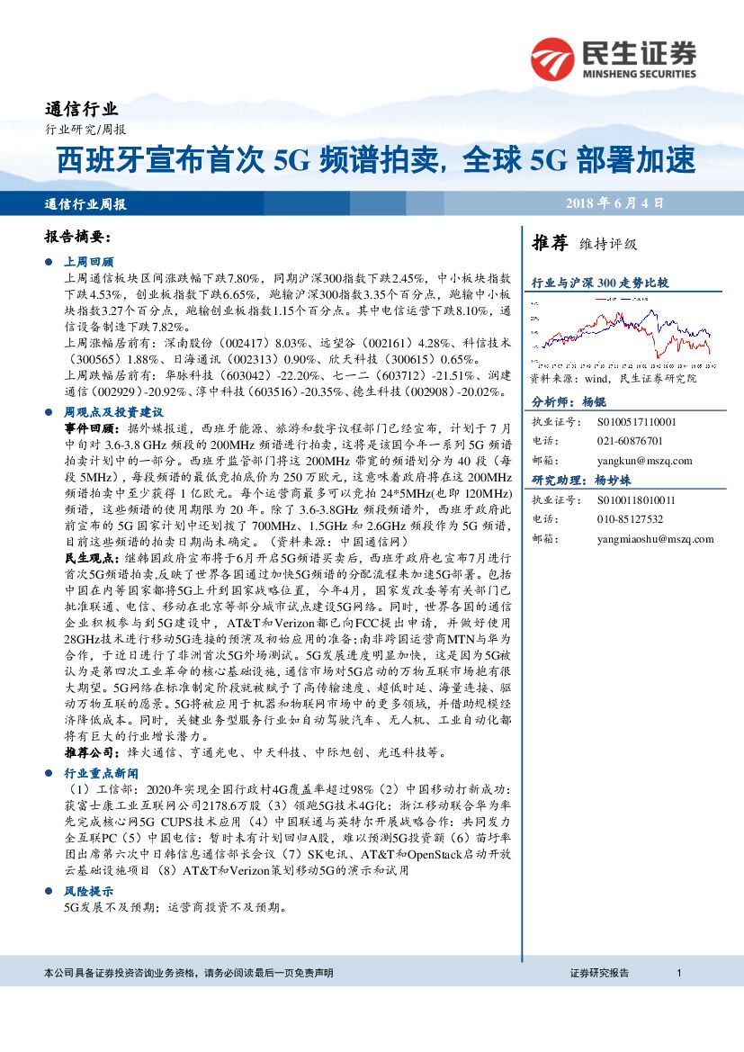 民生证券:通信行业周报:西班牙宣布首次5G频谱拍卖, 全球5G部署加速.pdf