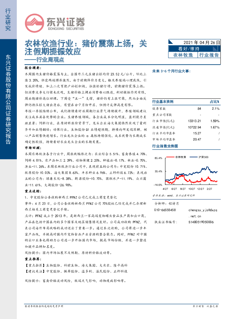 东兴证券:农林牧渔行业周观点:猪价震荡上扬,关注假期提振效应.pdf