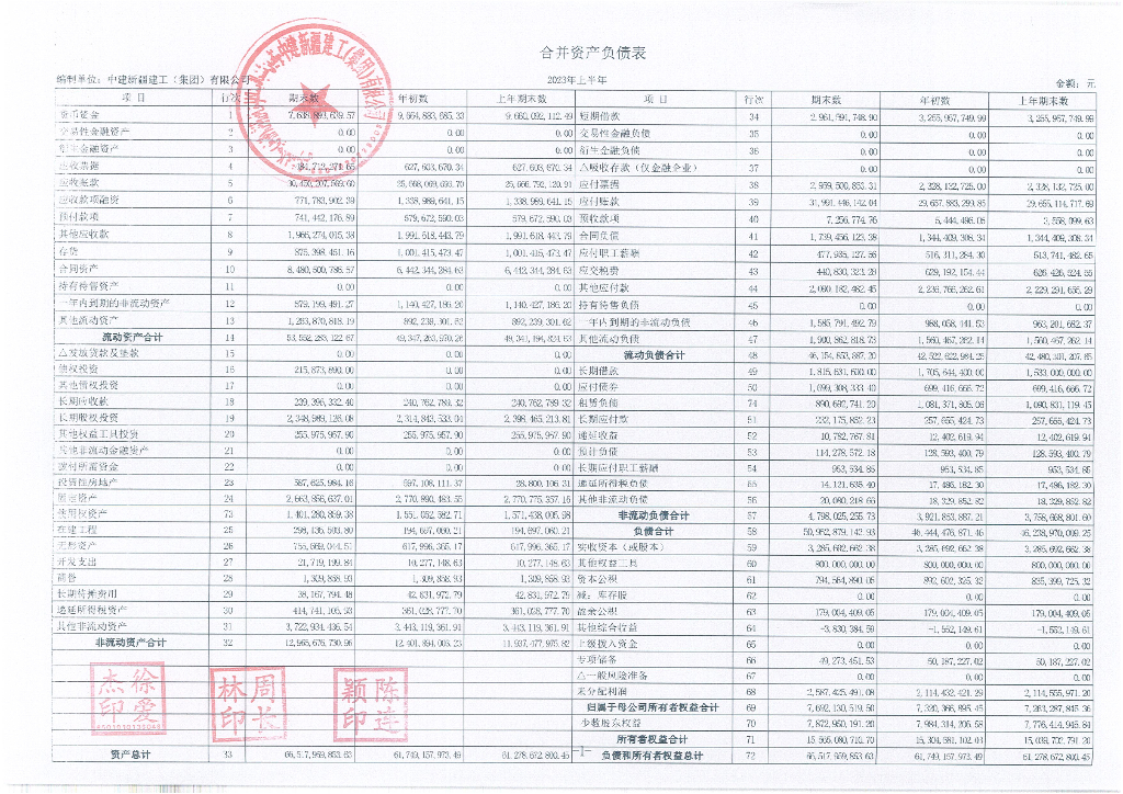 中建新疆建工(集团)有限公司2023年度半年度未经审计的合并及母公司财务报表.pdf