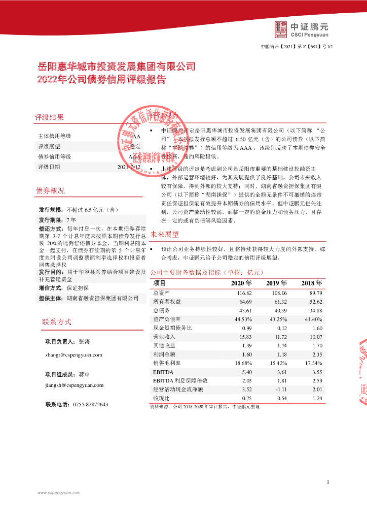 鹏元:岳阳惠华城市投资发展集团有限公司2022年公司债券信用评级报告.pdf