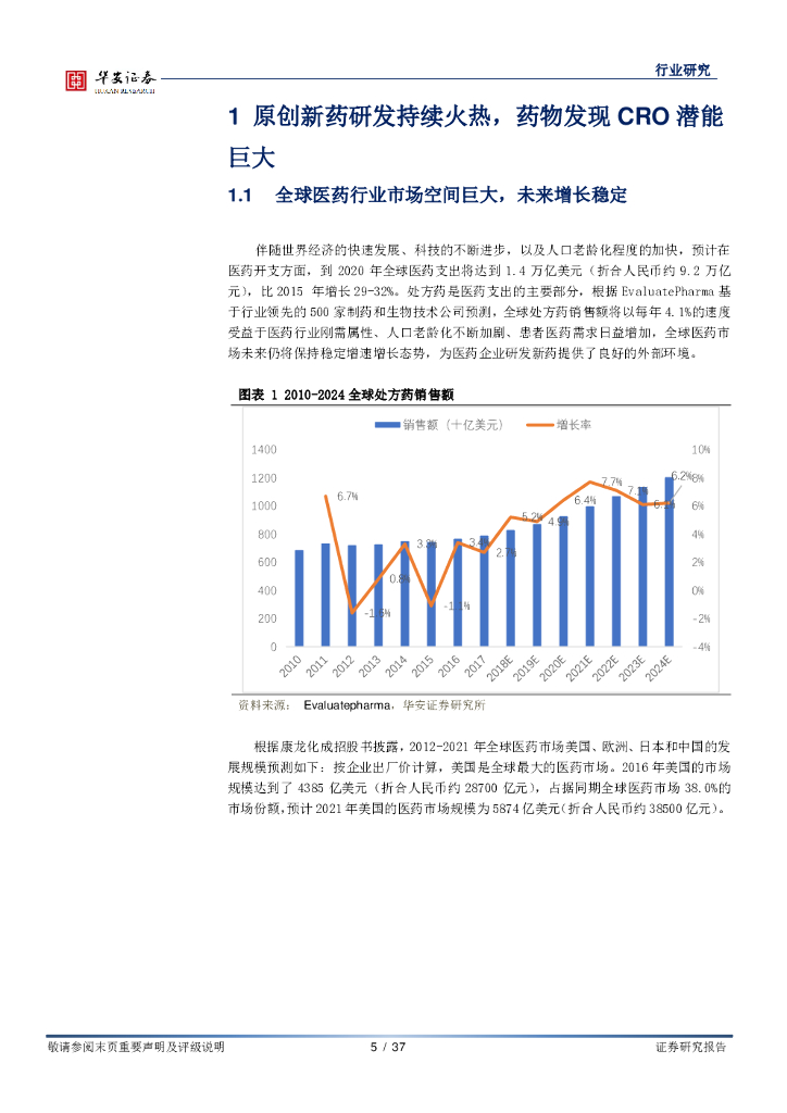 华安证券:医药生物深度报告:药物发现CRO行业规模持续增长,继续高景气.pdf