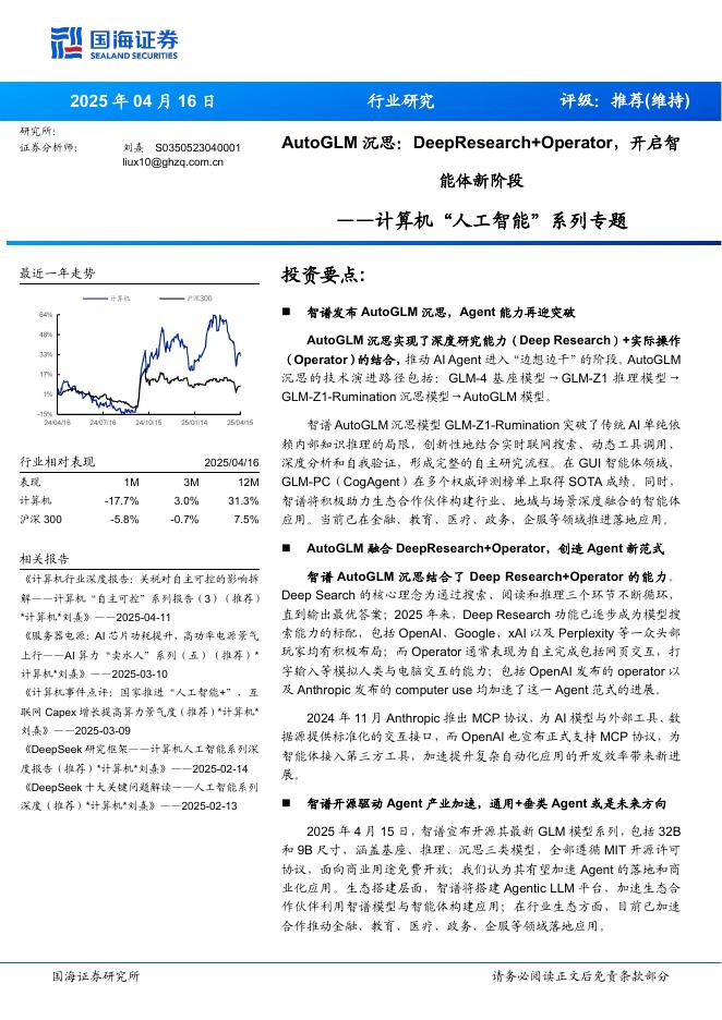 国海证券:计算机行业“人工智能”系列专题:AutoGLM沉思DeepResearch+Operator开启智能体新阶段.pdf