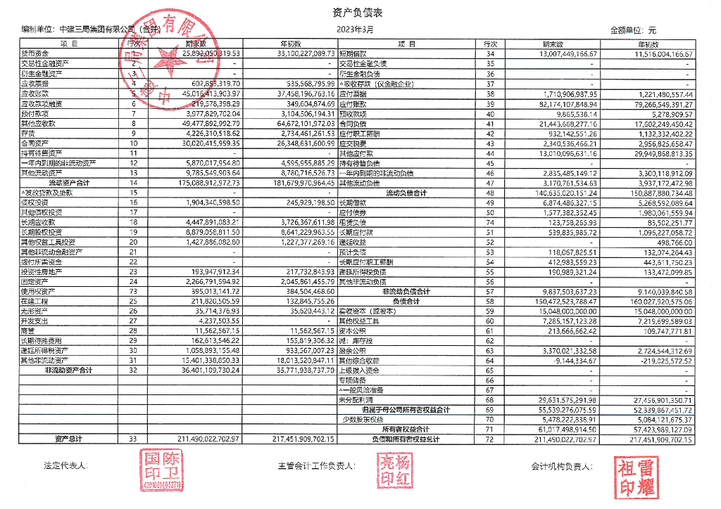 中建三局集团有限公司2023年一季度合并及母公司财务报表.pdf
