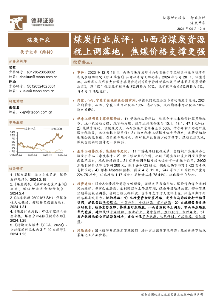 德邦证券:煤炭行业点评:山西省煤炭资源税上调落地,焦煤价格支撑更强.pdf