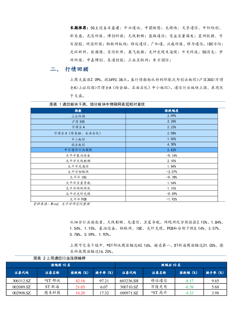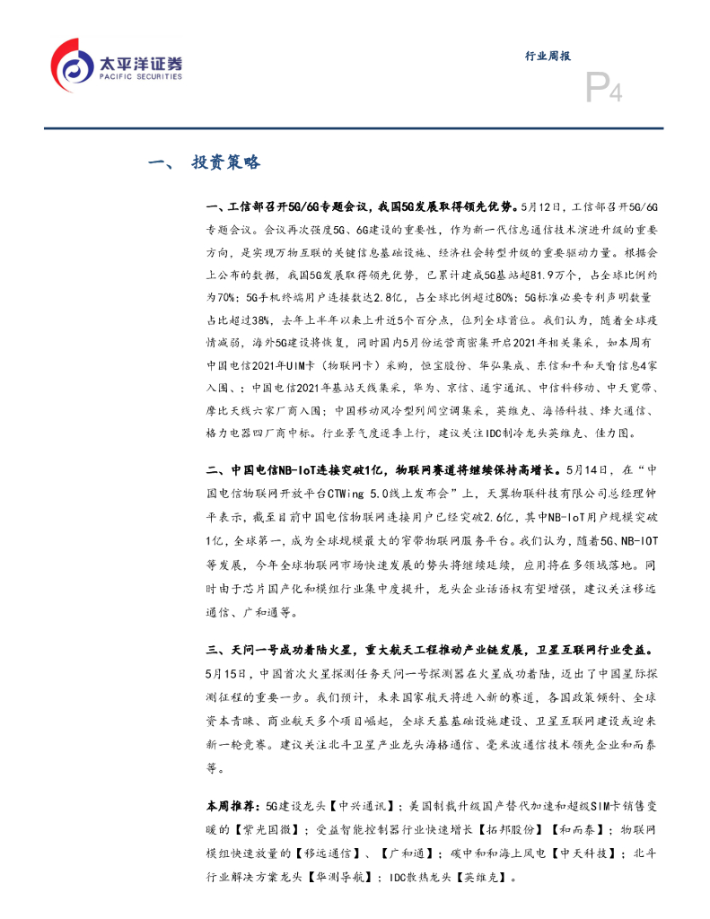太平洋证券:通信行业周报:中国5G绝对领先,卫星互联网和运营商集采促进行业上行.pdf