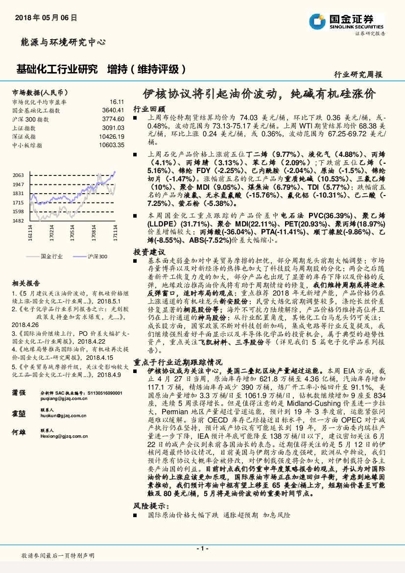 国金证券:基础化工行业研究周报:伊核协议将引起油价波动,纯碱有机硅涨价.pdf