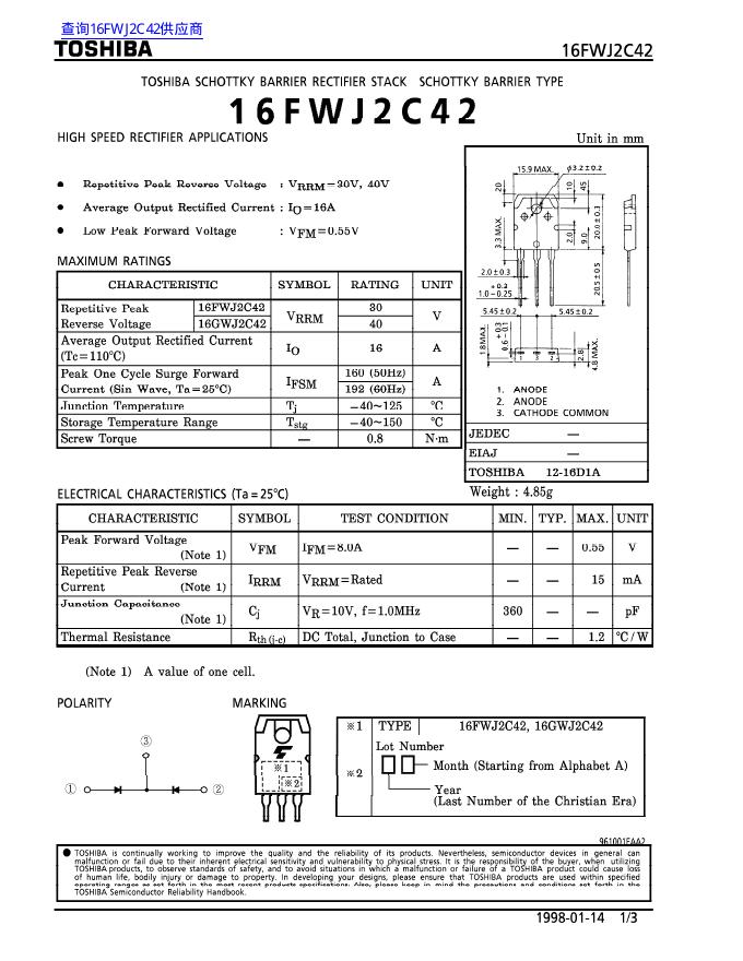 TOSHIBA 16FWJ2C42 数据手册.pdf