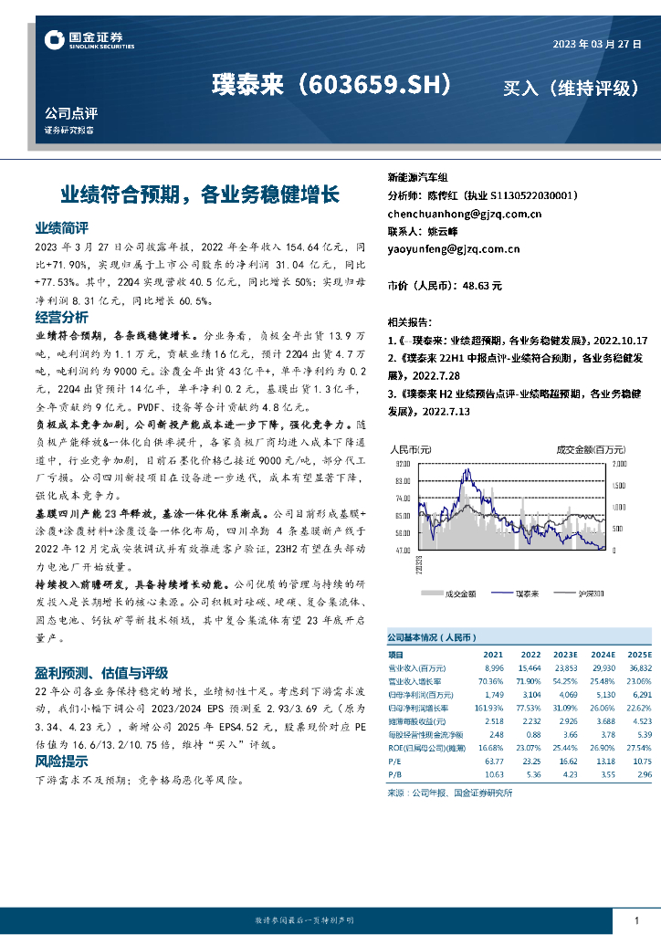 国金证券:璞泰来(603659)-业绩符合预期,各业务稳健增长.pdf