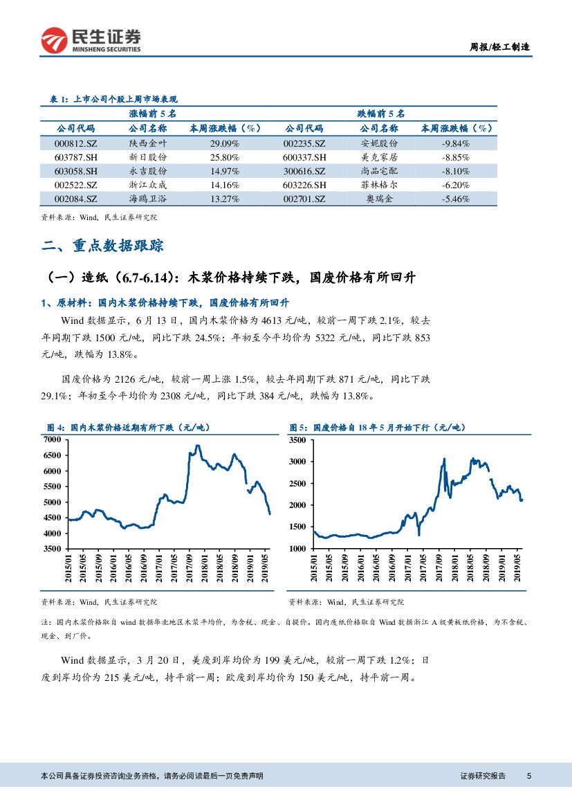 民生证券:轻工制造周报:1-5月住宅竣工同比下降10.9%,木浆价格持续下跌.pdf