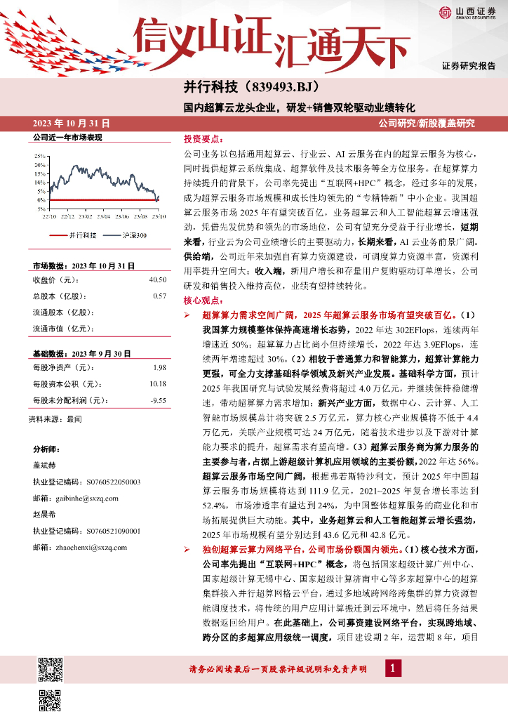 山西证券:并行科技(839493)-国内超算云龙头企业,研发+销售双轮驱动业绩转化.pdf