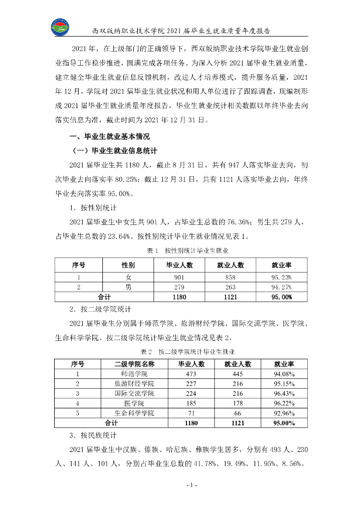 西双版纳职业技术学院2021届毕业生就业质量年度报告.pdf