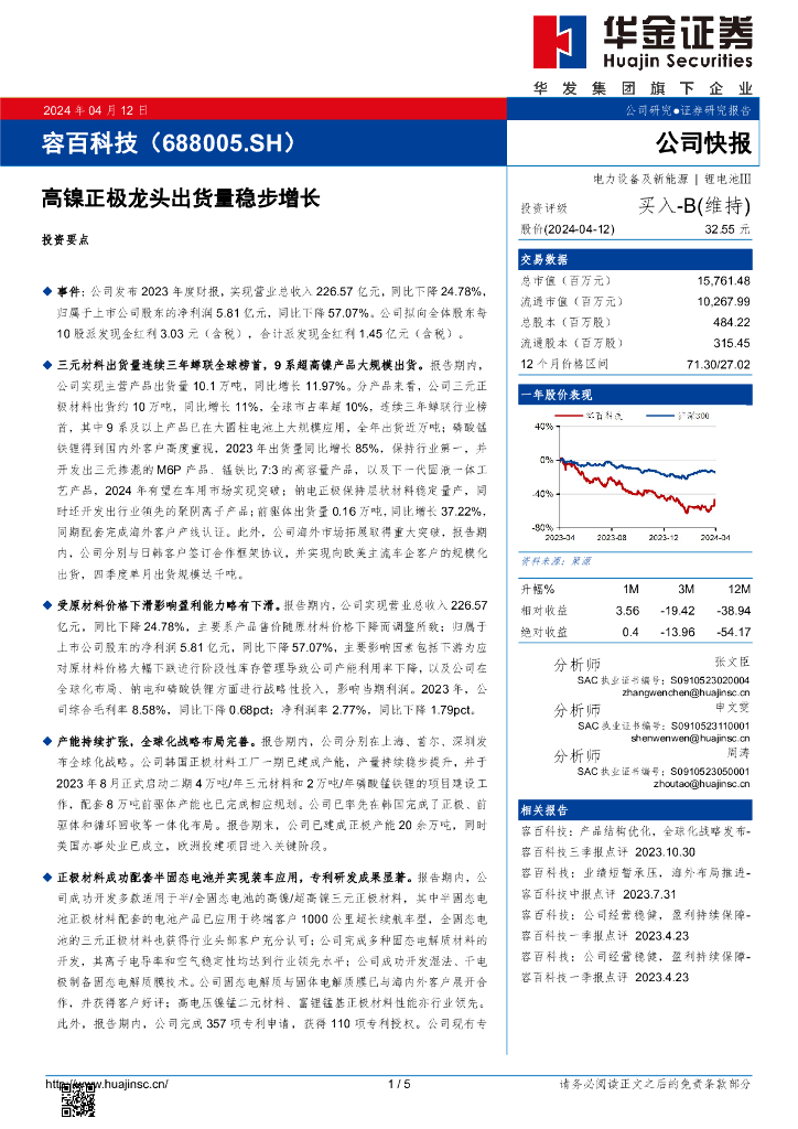 华金证券:容百科技(688005)-高镍正极龙头出货量稳步增长.pdf