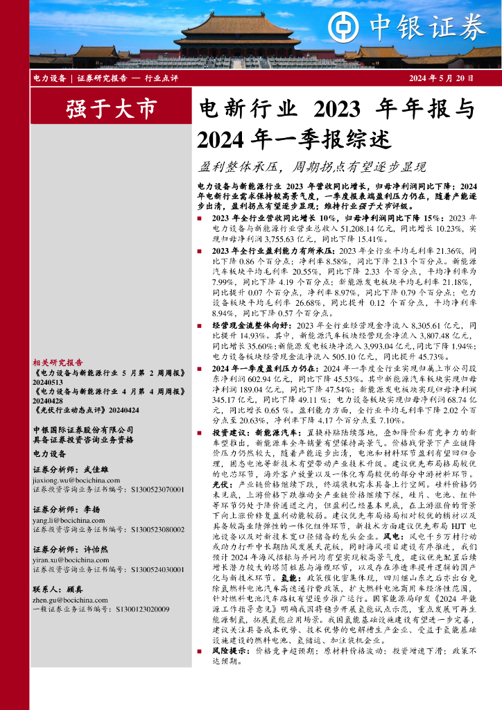 中银证券:电新行业2023年年报与2024年一季报综述:盈利整体承压,周期拐点有望逐步显现.pdf