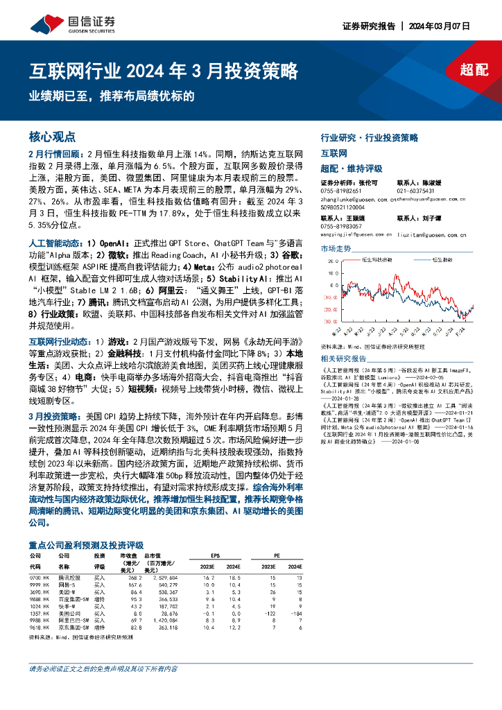 国信证券:互联网行业2024年3月投资策略:业绩期已至,推荐布局绩优标的.pdf