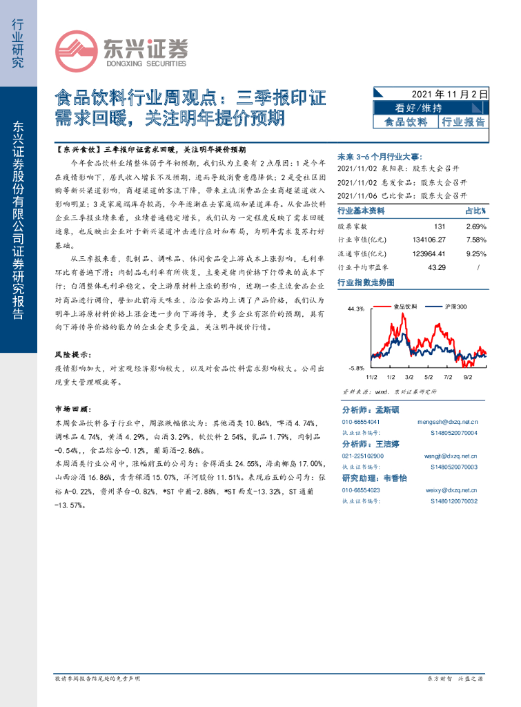 东兴证券:食品饮料行业周观点:三季报印证需求回暖,关注明年提价预期.pdf