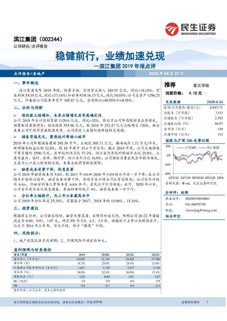 民生证券:滨江集团2019年报点评:稳健前行,业绩加速兑现.pdf