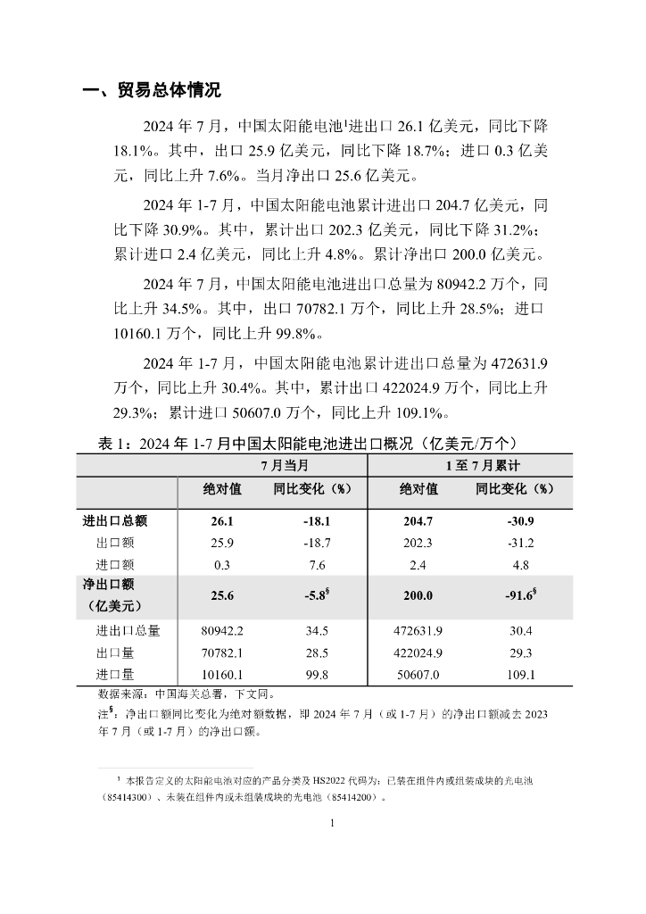对外经济贸易大学:中国太阳能电池贸易月度监测报告(2024年1-7月).pdf
