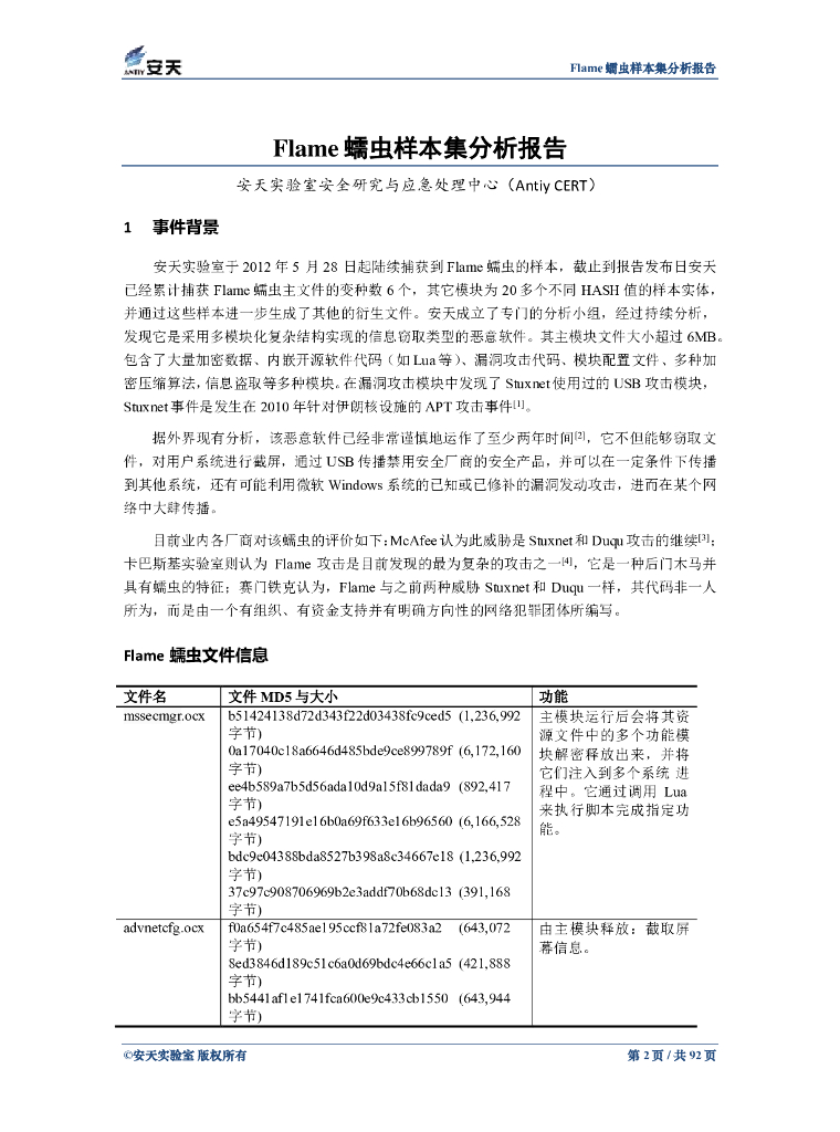 安天实验室:Flame蠕虫样本集分析报告.pdf