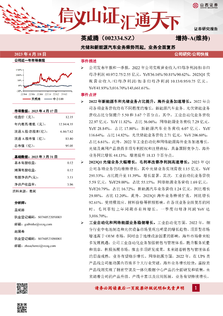 山西证券:英威腾(002334)-光储和新能源汽车业务乘势而起,业务全面复苏.pdf