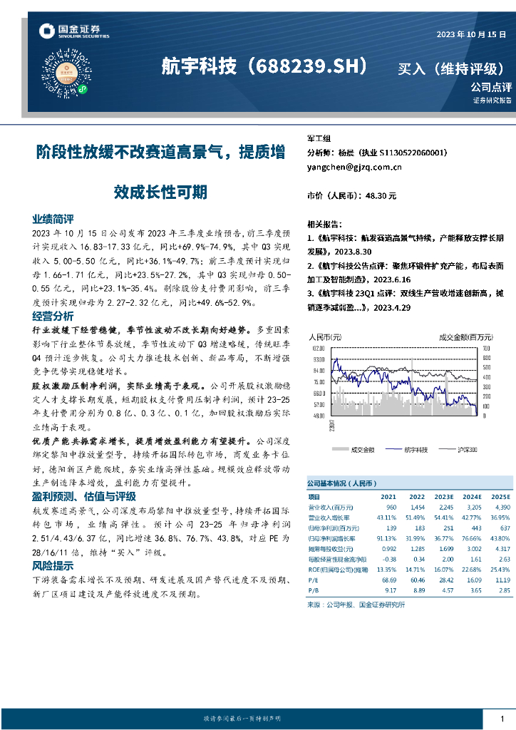 国金证券:航宇科技(688239)-阶段性放缓不改赛道高景气,提质增效成长性可期.pdf
