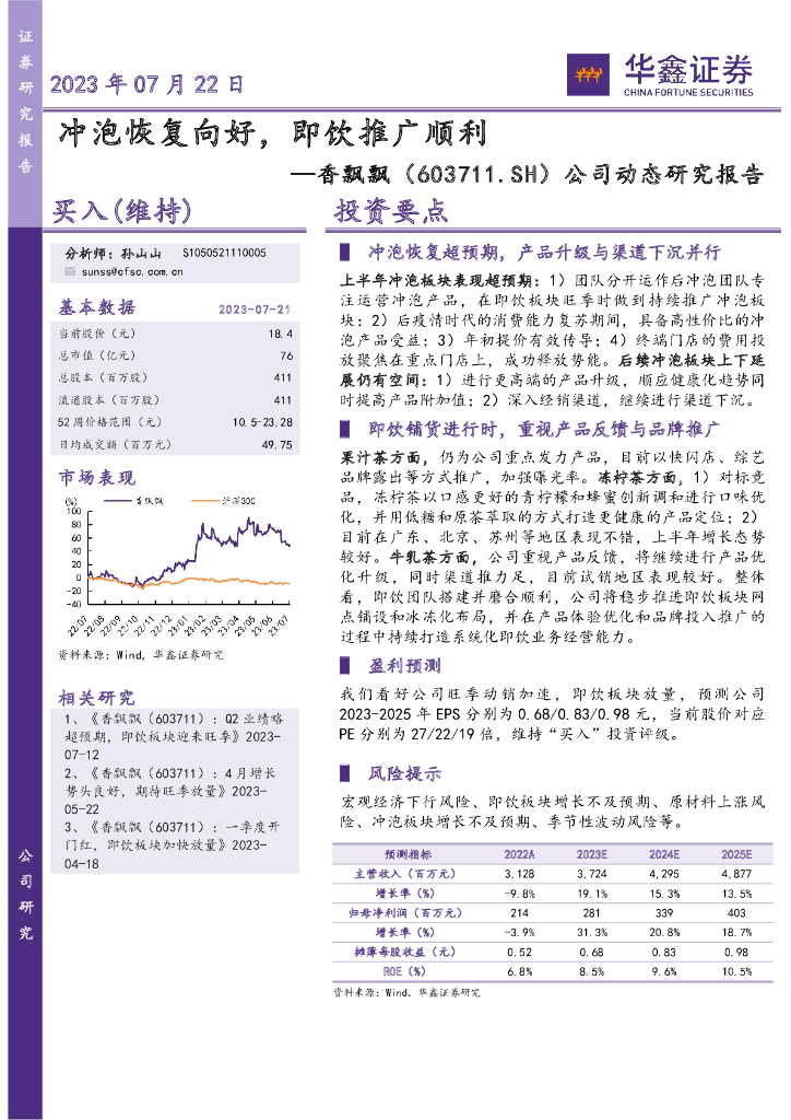 华鑫证券:香飘飘(603711)-公司动态研究报告:冲泡恢复向好,即饮推广顺利.pdf
