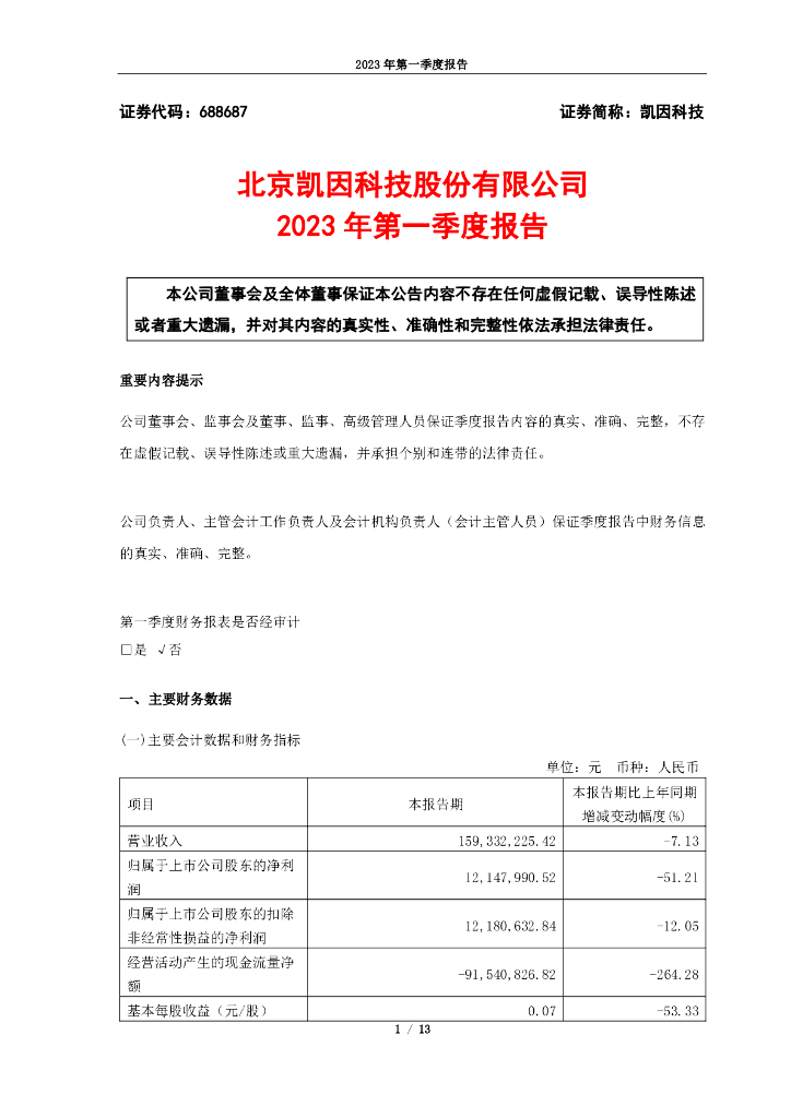 688687-凯因科技:凯因科技2023年第一季度报告(更正后).pdf