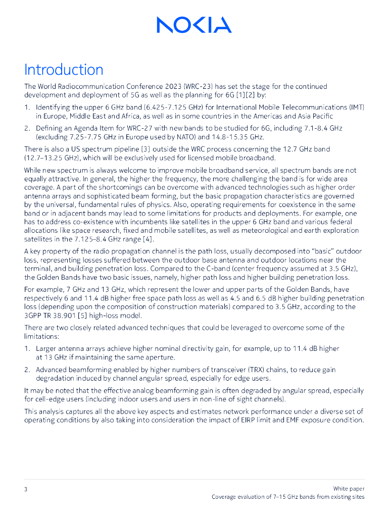 诺基亚贝尔:2024年现有站点7-15 GHz频段的覆盖评估白皮书(英文版).pdf
