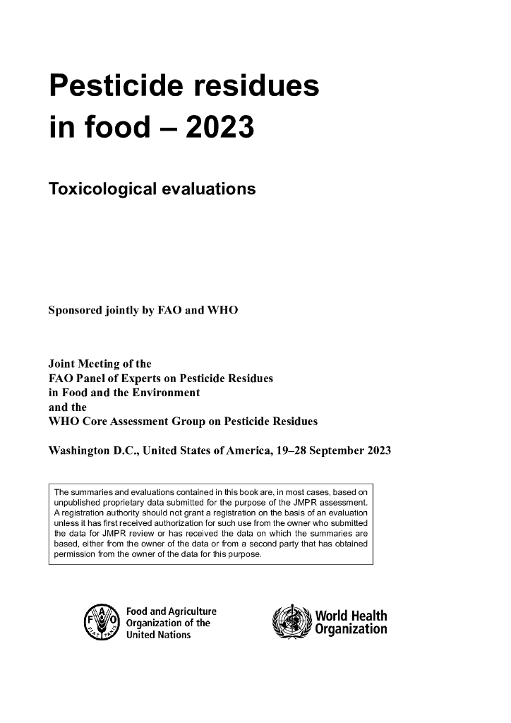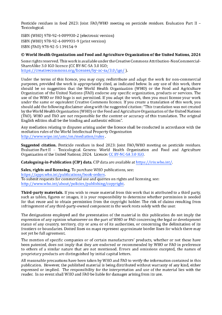 WHO世界卫生组织:食品中农药残留:2023年毒理学评估报告(英文版).pdf