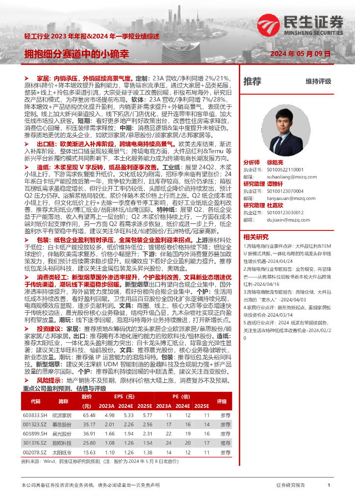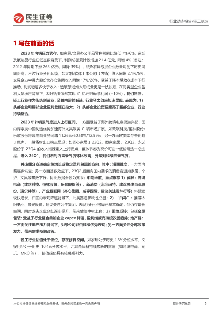 民生证券:轻工行业2023年年报&2024年一季报业绩综述:拥抱细分赛道中的小确幸.pdf