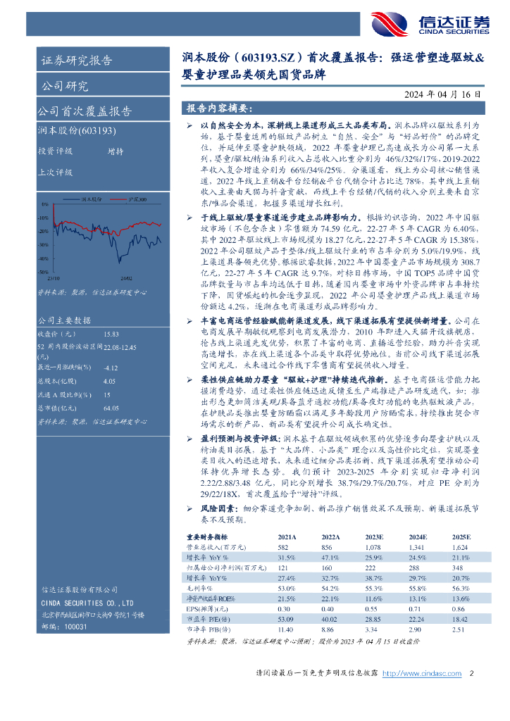 信达证券:润本股份(603193)-公司首次覆盖报告:强运营塑造驱蚊&婴童护理品类领先国货品牌.pdf