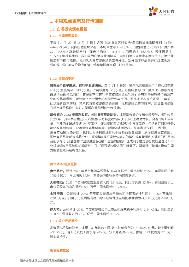 天风证券:食品饮料行业酒水饮料周报:五粮液实现提价,大众酒动销加速.pdf