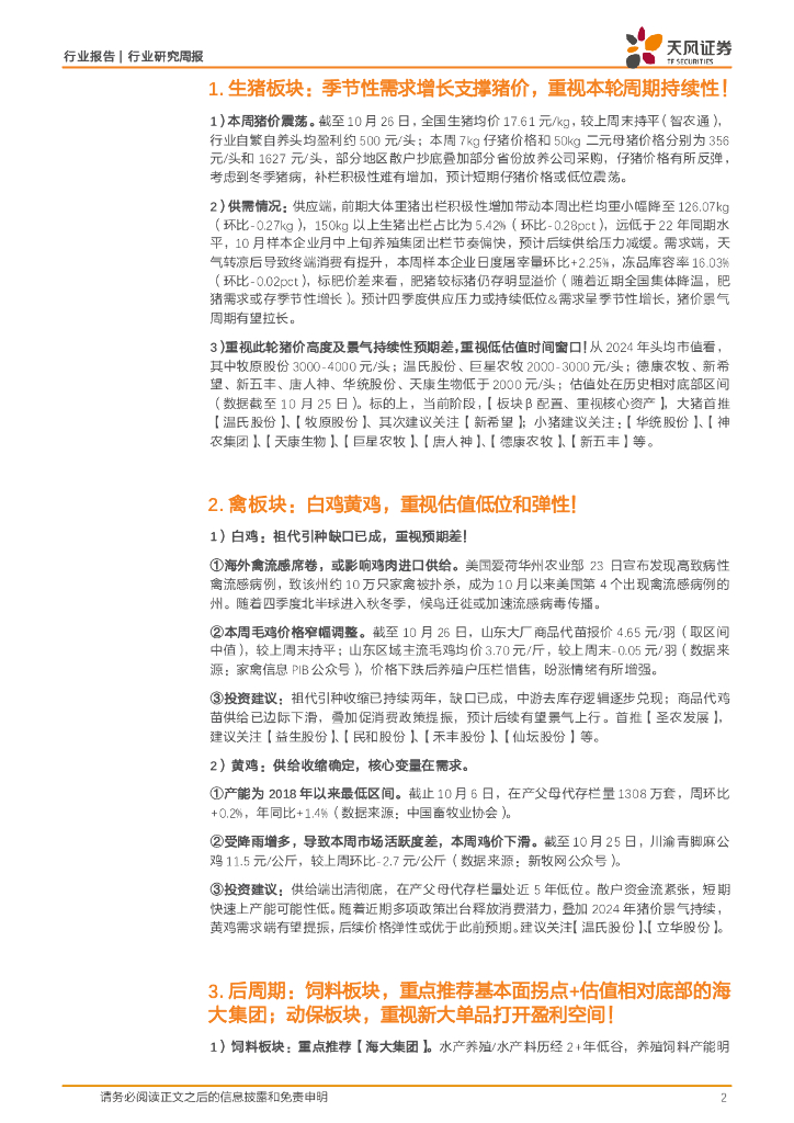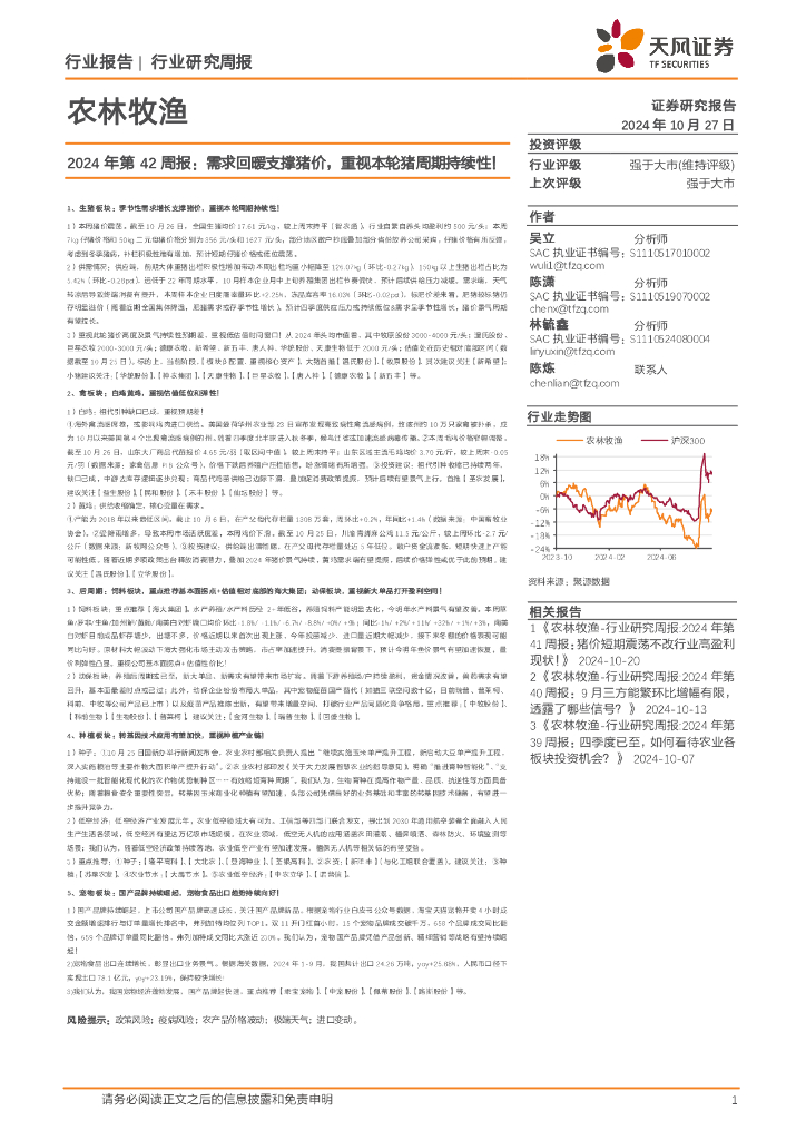 天风证券:农林牧渔行业2024年第42周报:需求回暖支撑猪价,重视本轮猪周期持续性!.pdf
