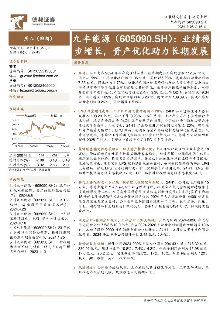德邦证券:九丰能源(605090)-业绩稳步增长,资产优化助力长期发展.pdf