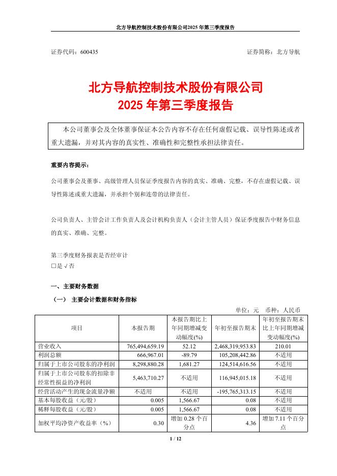 600435-北方导航:北方导航2025年第三季度报告.pdf