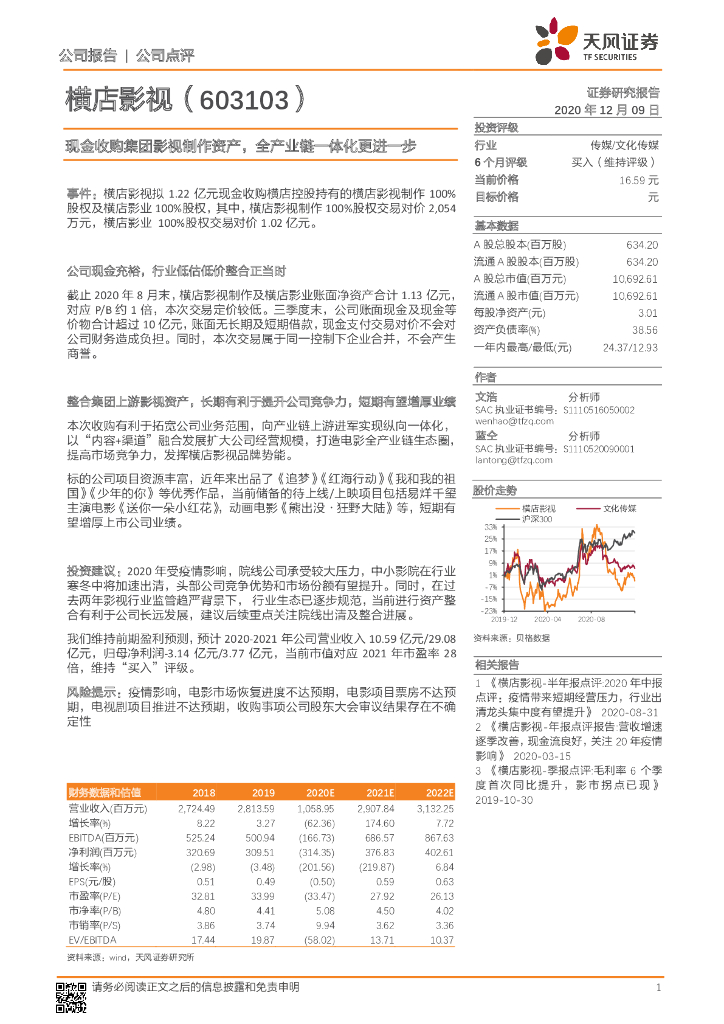 天风证券:横店影视(603103)-现金收购集团影视制作资产,全产业链一体化更进一步.pdf