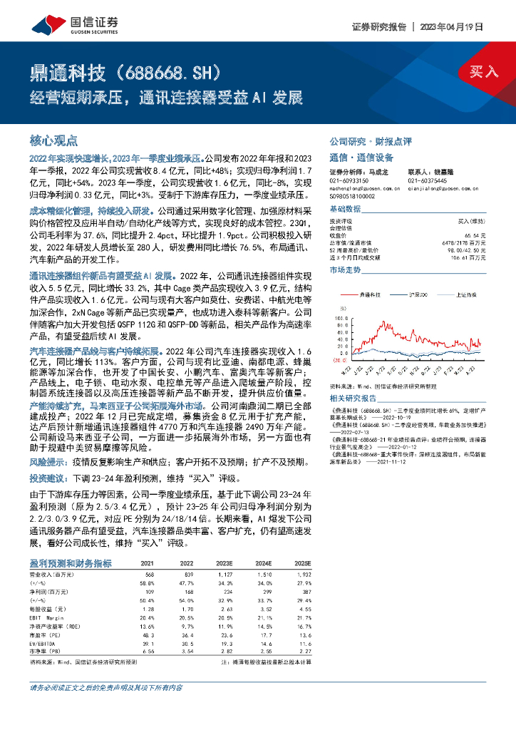 国信证券:鼎通科技(688668)-经营短期承压,通讯连接器受益AI发展.pdf