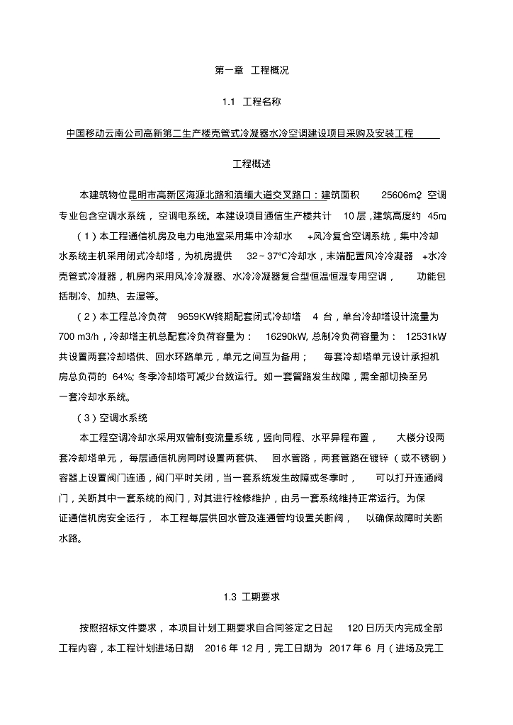 [云南]昆明中国移动管式冷凝器水冷空调建设项目采购及安装工程.pdf