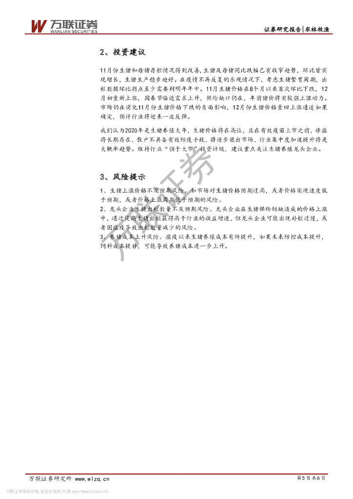 万联证券:生猪养殖11月份存栏数据点评:存栏环比改善,预计供需失衡仍将拉动猪价上涨.pdf