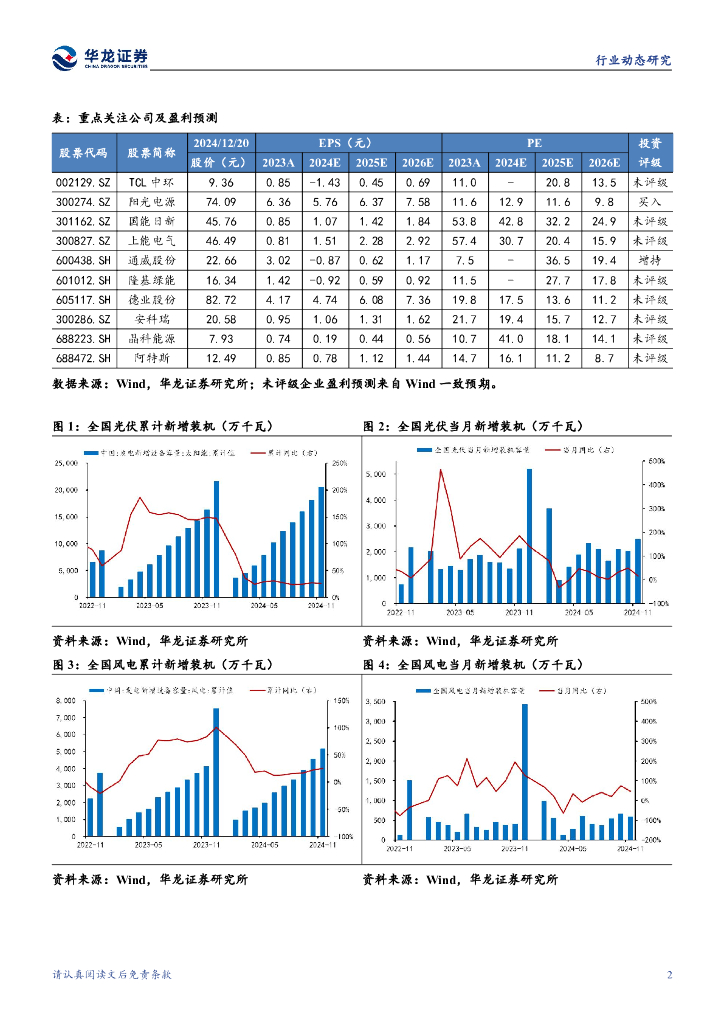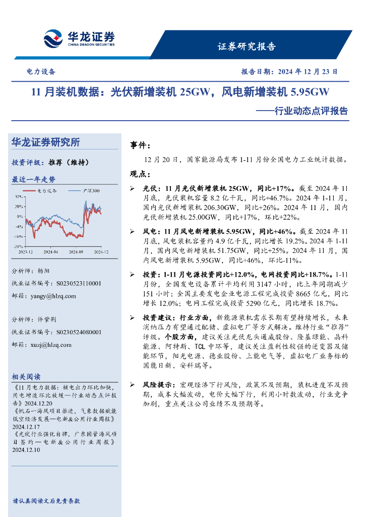 华龙证券:电力设备行业动态点评报告:11月装机数据,光伏新增装机25GW,风电新增装机5.95GW.pdf