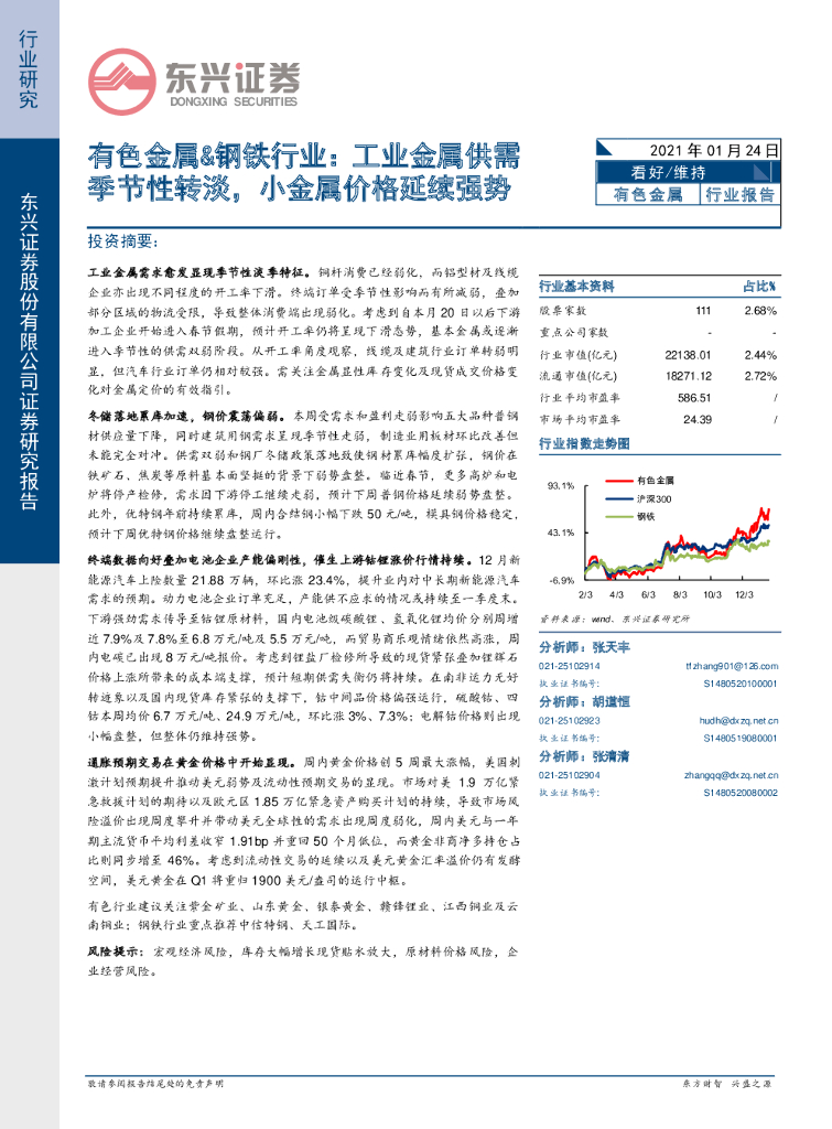 东兴证券:有色金属&钢铁行业:工业金属供需季节性转淡,小金属价格延续强势.pdf