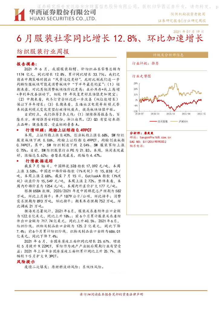 华西证券:纺织服装行业周报:6月服装社零同比增长12.8%、环比加速增长.pdf