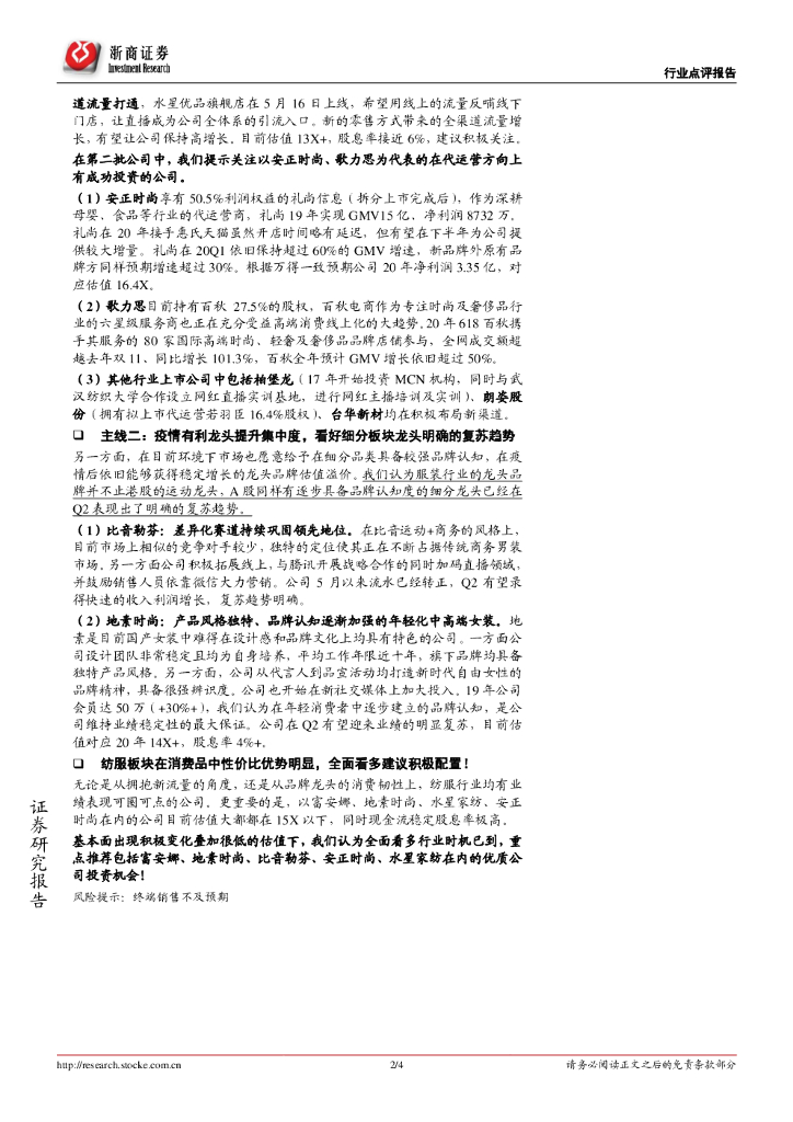 浙商证券:纺织服装行业点评报告:电商+龙头两大主线均复苏明显,全面看多低估值纺服行业.pdf