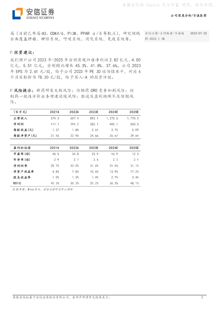 安信证券:百诚医药(301096)-药学研究+临床试验+定制研发生产,综合药物研发及生产的一体化大平台逐步隐现.pdf