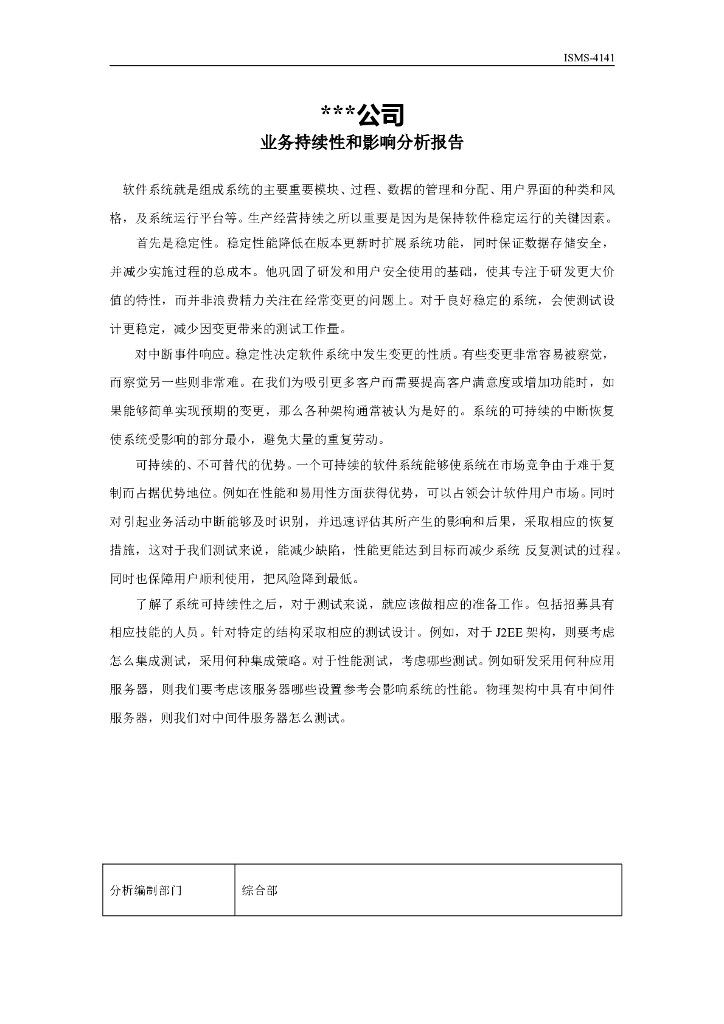 ISMS-4141-IT业务持续性和影响分析报告.doc