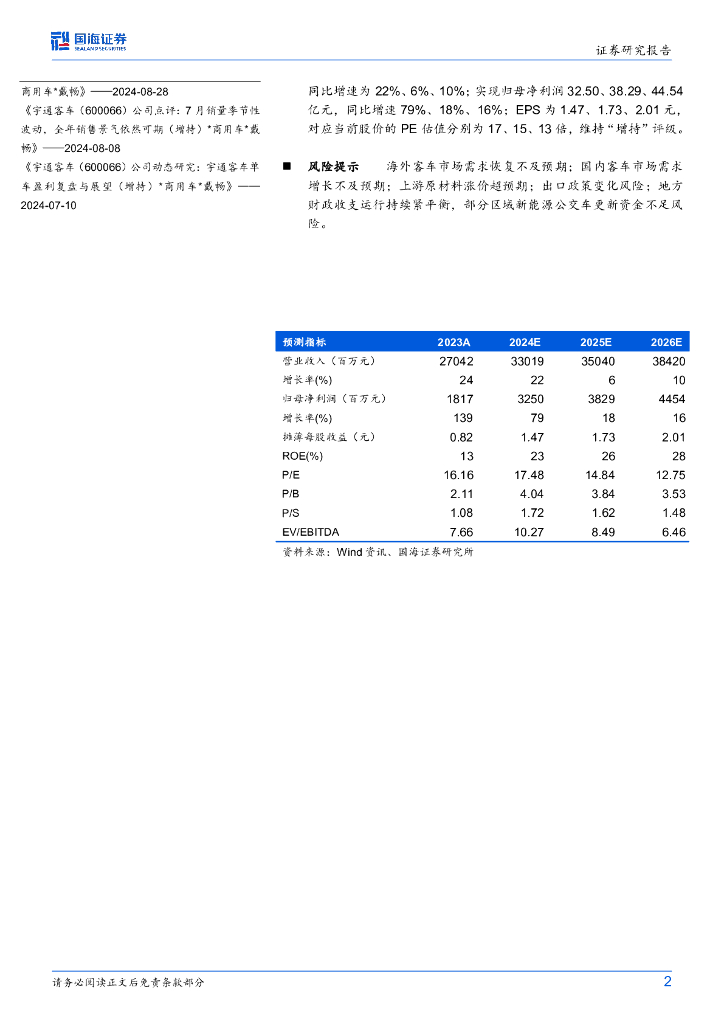 国海证券:宇通客车(600066)-2024Q3业绩点评:2024Q3业绩符合我们预期,关注2024Q4业绩释放.pdf