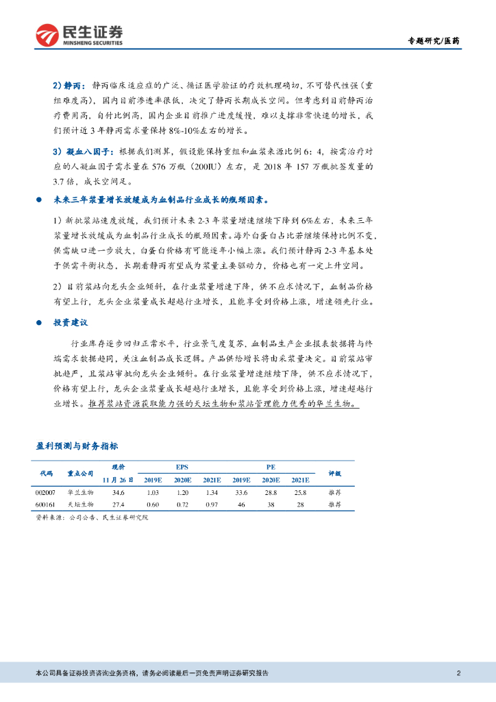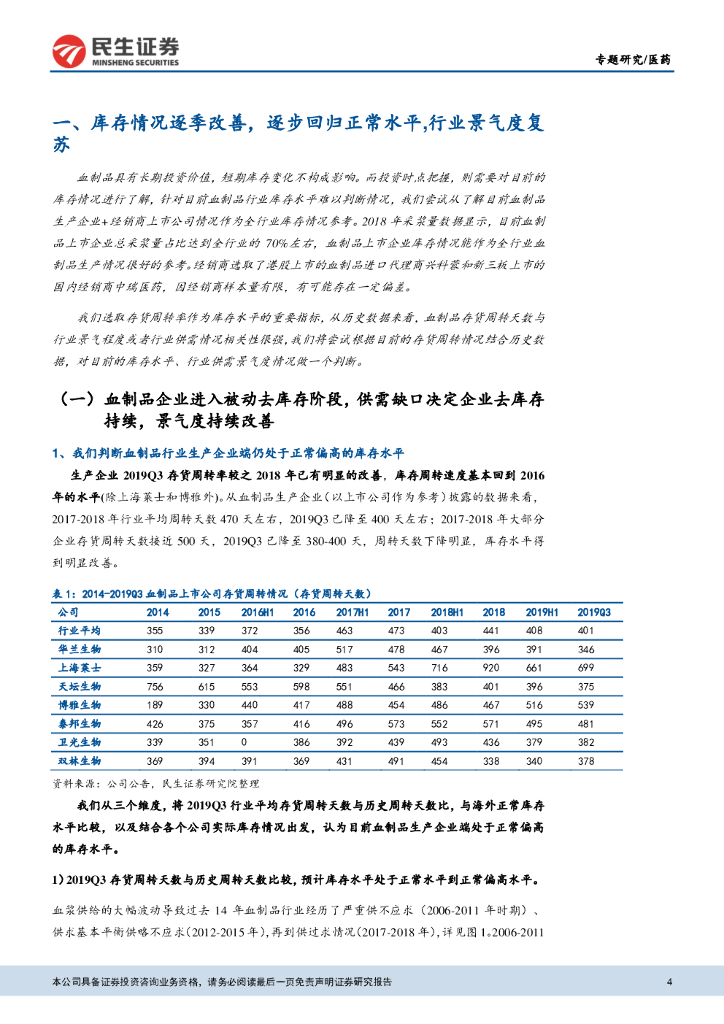 民生证券:血制品行业专题研究系列:库存逐步回归正常水平,关注血制品成长性.pdf