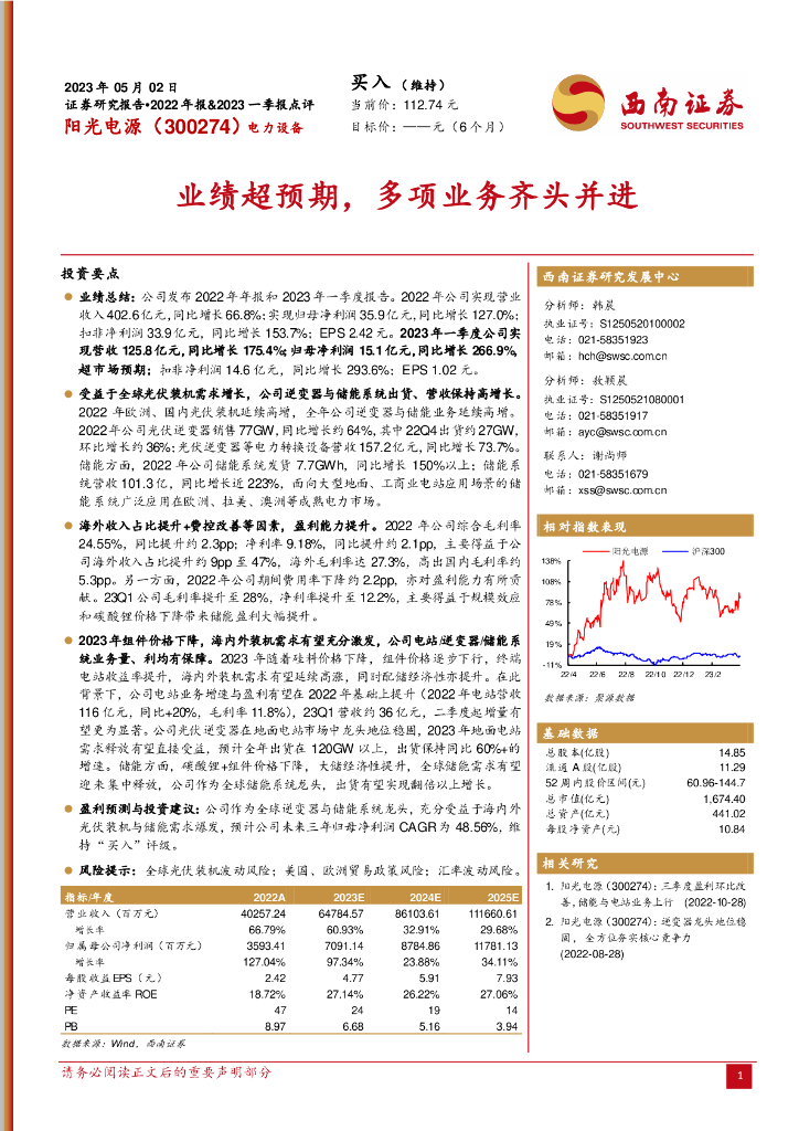 西南证券:阳光电源(300274)-业绩超预期,多项业务齐头并进.pdf