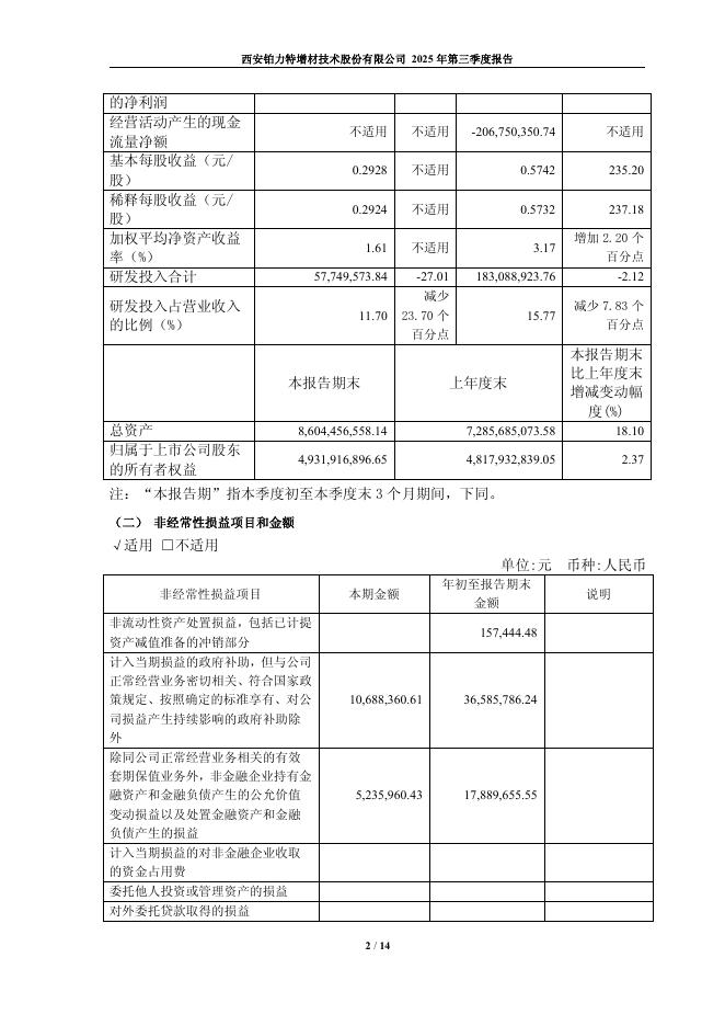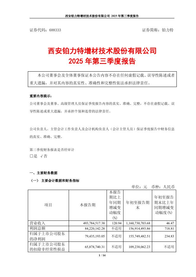 688333-铂力特:西安铂力特增材技术股份有限公司2025年第三季度报告.pdf