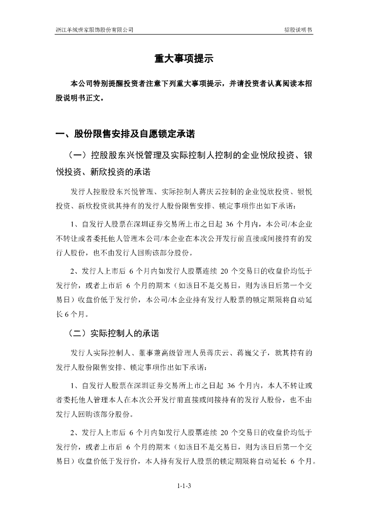 浙江羊绒世家服饰股份有限公司深交所主板IPO上市招股说明书.pdf