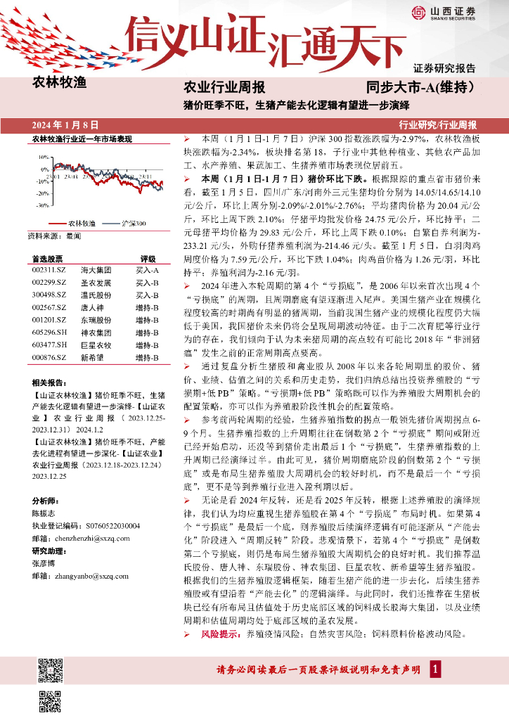 山西证券:农业行业周报:猪价旺季不旺,生猪产能去化逻辑有望进一步演绎.pdf